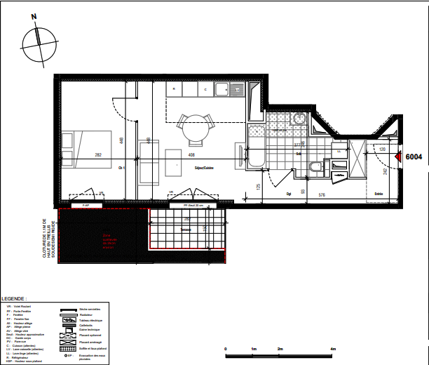 VueDevenez propriétaire d’un appartement qui comprend une surface habitable de 46.14m2, une entrée : 5.04 m², séjour / cuisine : 18.35 m², chambre :…